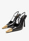 Luxurious Saint Laurent Opyum mules crafted from smooth black leather, featuring the iconic gold YSL logo heel. Designed with elegant crossed front straps and a modern open-back silhouette, delivering a bold and sophisticated statement perfect for evening and special occasions.
